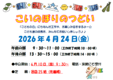 4月24日(金)に、季節のイベント【こいのぼりのつどい】を開催いたします☆ こどもの日にちなんだ、簡単な製作とお楽しみ会を行いますので、 ご予約の上ご参加お待ちしています♪ 【午前の部】9:30~11:00 (製作は10 […]
