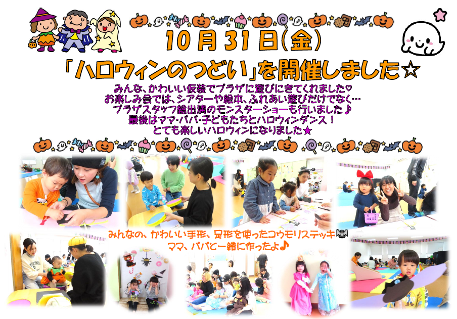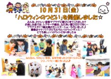 「ハロウィンのつどい」を開催しました! たくさんの子ども達が、 かわいい仮装で遊びにきてくれました♪ 絵本やスケッチブックシアター、ふれあい遊びなども楽しみました! 最後はスタッフ総出演のモンスターショー★☆ みんなでハ […]