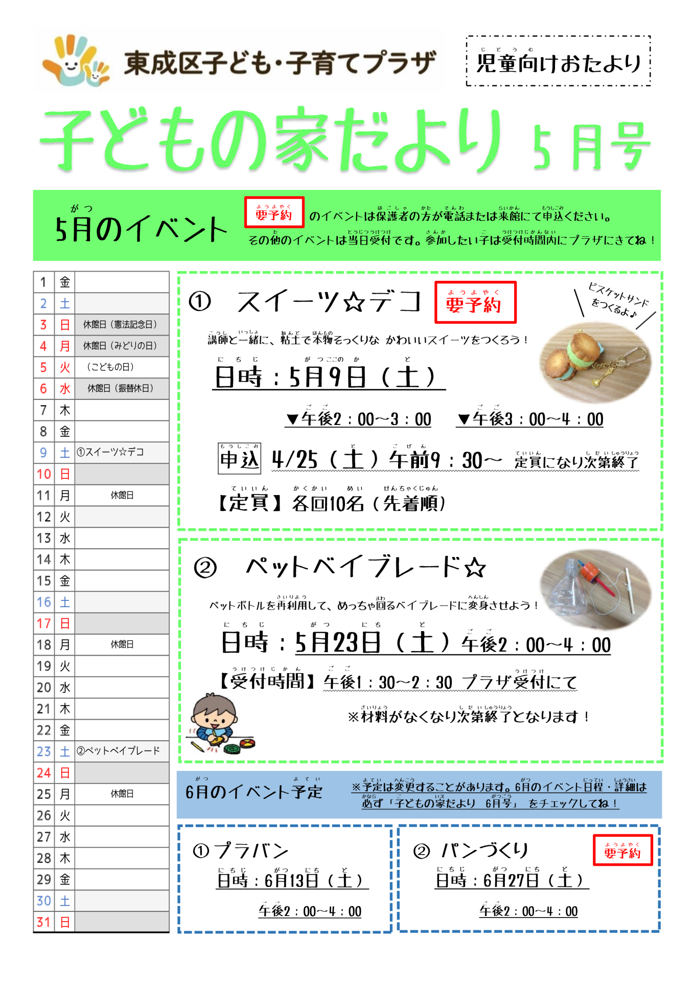 自由遊びのあと、お誕生日のお友達をみんなでお祝いするよ! プラザからはお誕生日カードをプレゼント☆ ※誕生日の方は備考欄に誕生日のご記入をお願いします。 また、お子さんの写真を撮影するため、 開催日までにプラザにお越 […]