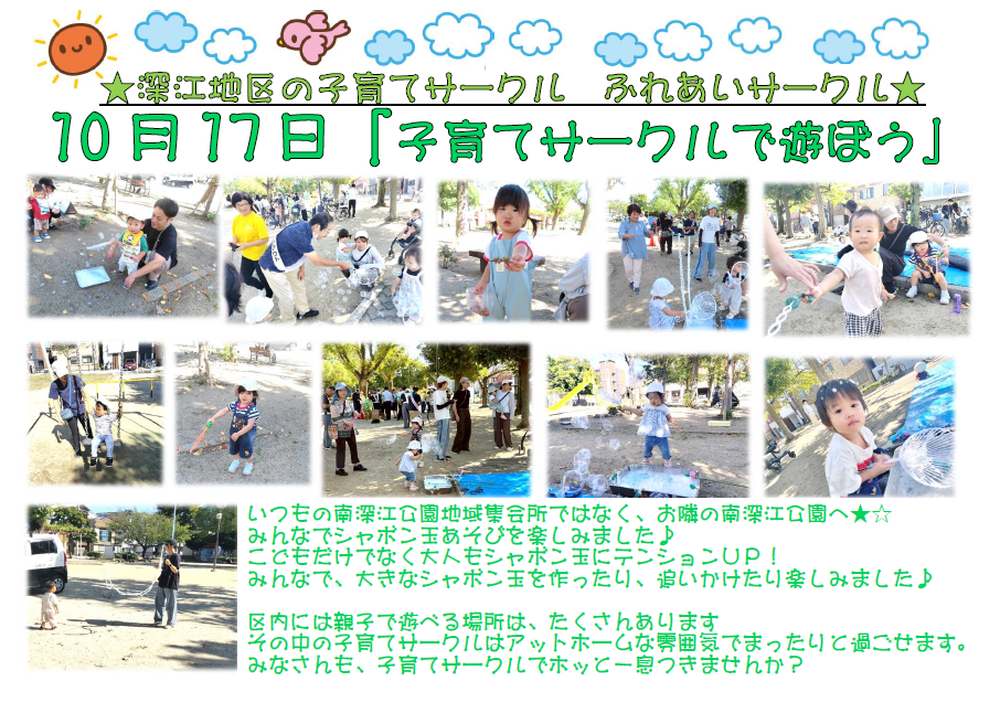 10月17日(金)に深江地区の南深江公園にて、「しゃぼん玉あそび」を開催しました★☆